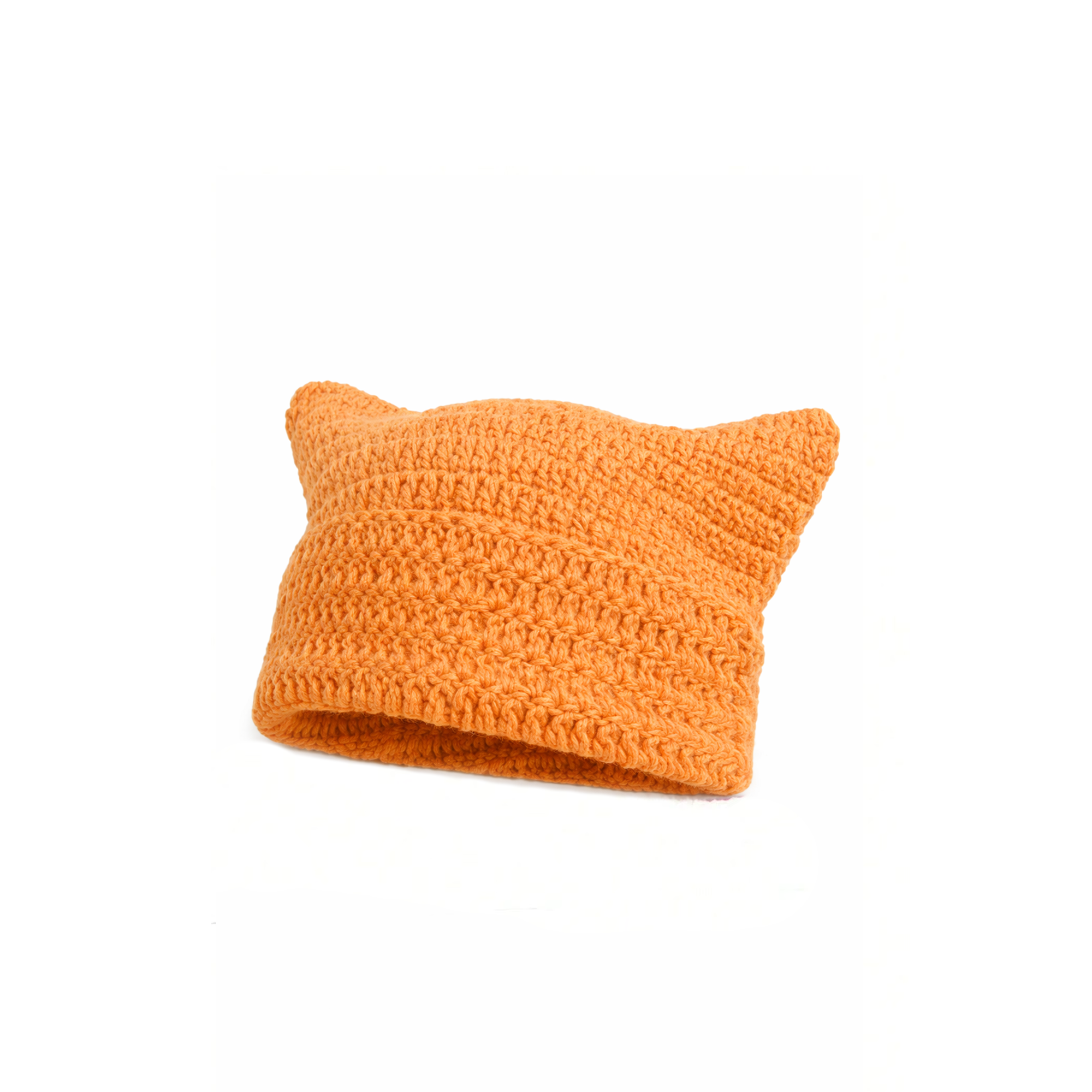 inspired by crochet designs of the 80s, these square beanies form a cat ear shape when worn. they're warm, cosy, and come in a bunch of different colourways to fit any outfit.